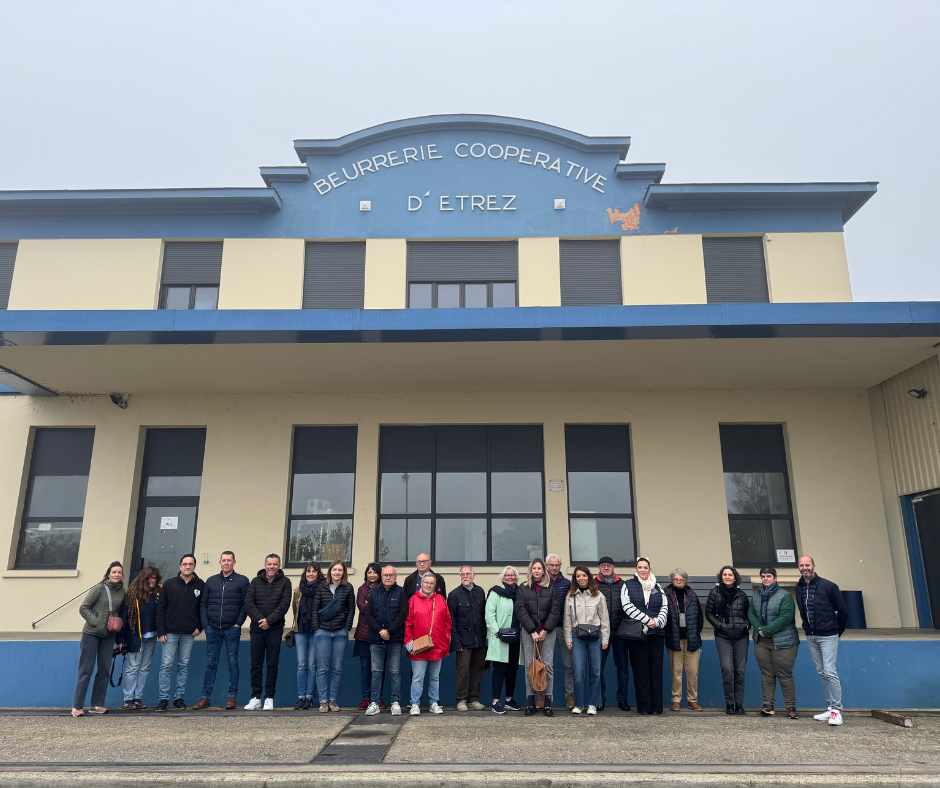 La journée a débuté par la visite de la Laiterie Coopérative d’Étrez, haut lieu de la production laitière bressane. Les participants ont pu découvrir les différentes étapes de fabrication de la Crème et du Beurre de Bresse AOP, véritables symboles du savoir-faire local.
