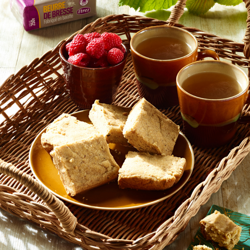 • Tamiser la farine, incorporer la poudre de noisette et le beurre. Mélanger, puis laisser refroidir.